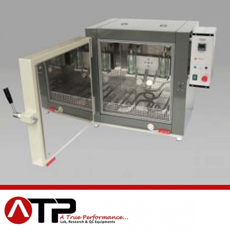 The apparatus consists of a benchtop oven with a turntable inside that can carry four or eight 200 ml Coca-Cola bottles. The turntable rotates the bottles at 5 rpm.