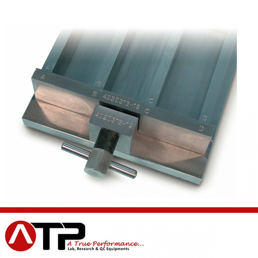 Identical in shape to mod. E102, but manufactured from heavy duty steel “with hardness of inside walls over HV 500” (EN196/1 Specifications recommend hardness HV 400). This high hardness value keeps the mould within the tolerances requested by Spec. for many tests, granting very long utilisation life. All parts are marked with an identification number for a correct assembling. Each mould is individually verified in the dimensional tolerances, hardness, squareness, flatness and roughness with instruments periodically certified by Namas Centre or equivalent. A part-number is engraved on each mould, and a Certificate of Conformity is supplied along with.